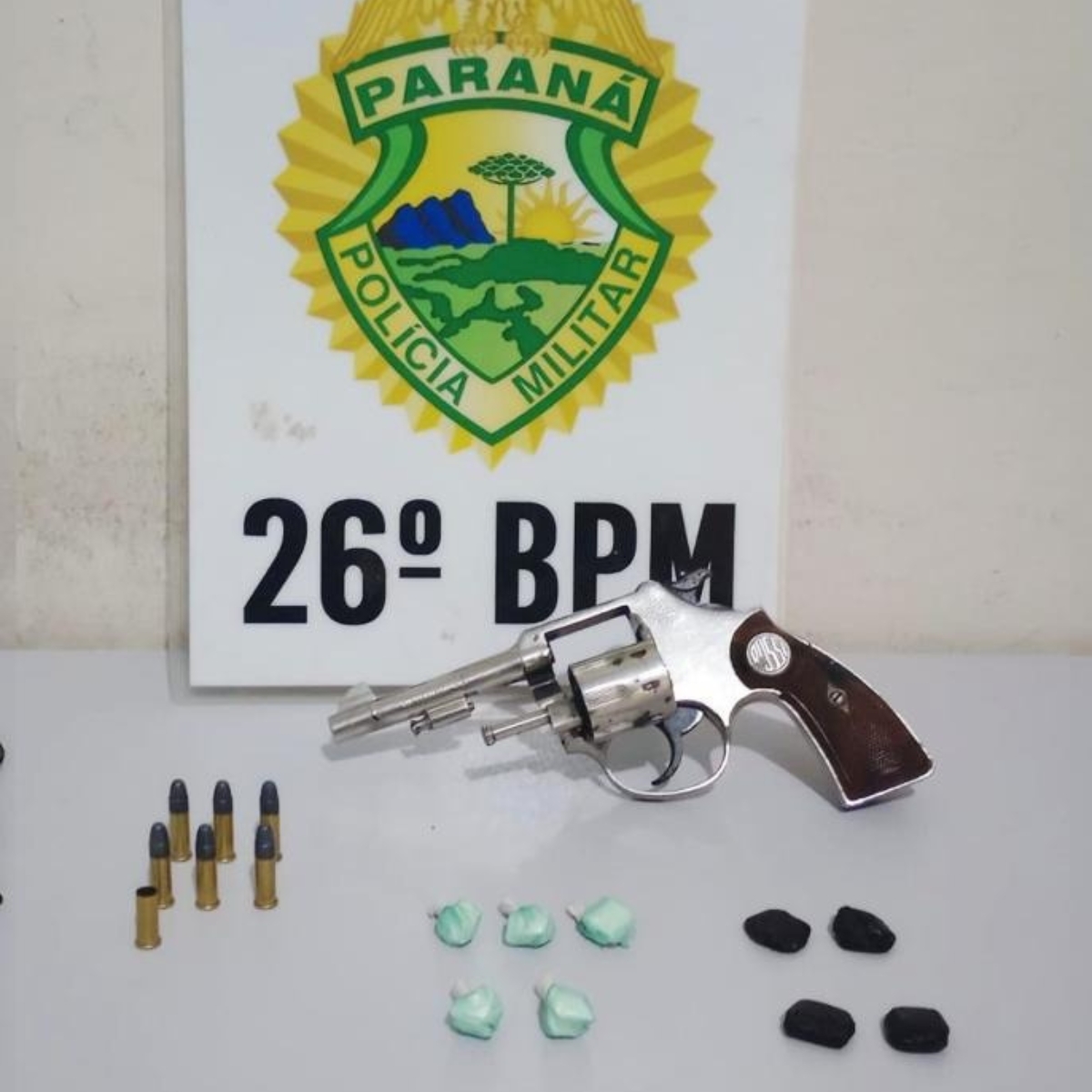 O suspeito foi preso em flagrante pelos crimes de tráfico de drogas e posse ilegal de arma de fogo, sendo encaminhado à Delegacia de Polícia Civil de Tibagi para os procedimentos legais.